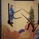 Mise en scène: musique; déplacement du paravent, à chaque fois différent; arrêt sur un panneau en particulier et dans le panneau représentation d’une scène évocatrice d’un écrit de Cendrars. La scène terminée, le paravent se déplace à nouveau